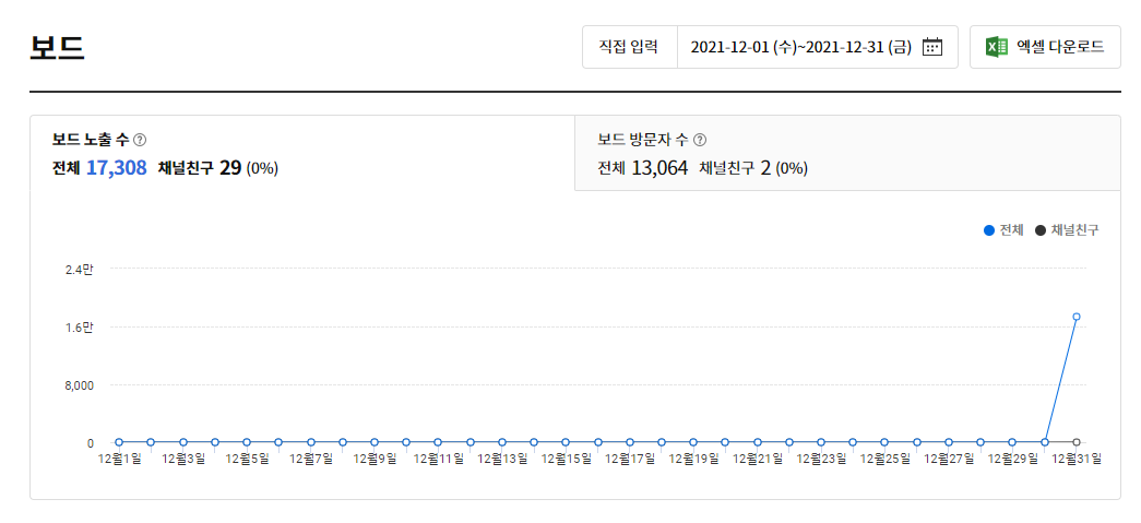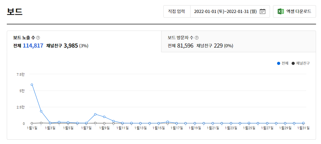 보드 방문자 수 노출 수만 공개하도록 하겠습니다.