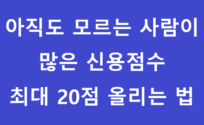 신용등급의 경우 1점에 따라서도 등급이 변하기 때문에 정말로 대출이 필요하고 돈이 필요한 상황이 발생하게되면 1점이 간절해지게된다. 오늘은 아직도 모르는 사람들이 많은 것 같아서 신용점수를 아주 간단하게 최대 20점까지 올리는 방법을 알려주려고 한다.